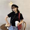 Tricou polo nou cu mânecă scurtă pentru femei, cu talie înaltă subțire, rever scurt, student top