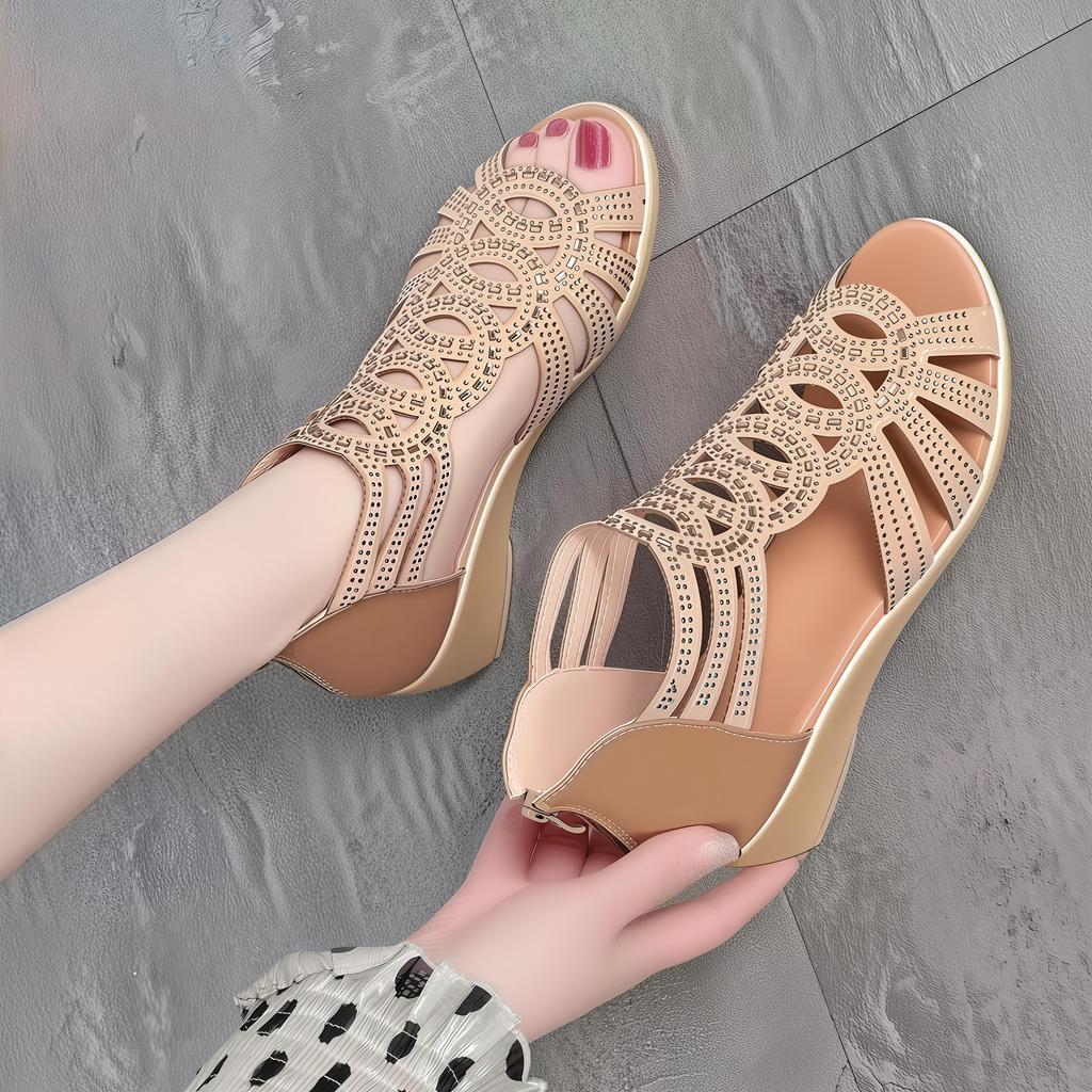 Sandale cu pană de damă. Sandale gladiator țesute la modă de vară