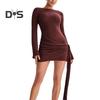 Îmbunătățește-ți garderoba cu această rochie elegantă pentru femei. Prezentând o culoare solidă și tonuri calde, această rochie emană eleganță. Designul fără spate adaugă o notă de alură, în timp ce gâtul rotund și mânecile lungi oferă un apel clasic.. Designul cu tiv înnodat creează un aspect vizual stratificat, îmbunătățind estetica generală.. Confecționată din fibră de poliester de înaltă calitate, această rochie este rezistentă la șifonare, durabilă și își menține bine forma..