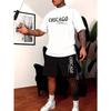 Pantaloni scurți cu mâneci scurte Costum de vară Tricou bărbați Imprimare tendință Costum pentru bărbați cu gât rotund cu Gangster Frumos costum din două piese