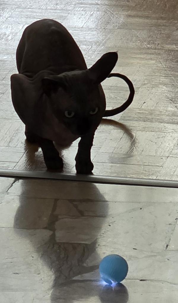 Jucărie frumoasă pentru pisici Îi place foarte mult!!! 🥰😻 Singurul lucru este că dopul rezervei nu rămâne închis Oricum se învârte la fel Multumesc mult 😽
