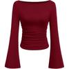 Pure Desire Style Flap Sleeve Top for Women Early Spring and Autumn New Style for Women's Slim Solid Color Short Long-sleeved T-shirt
