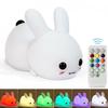 Lumină de noapte colorată cu iepure de jad - lampă LED cu telecomandă, reîncărcabilă, drăguță de desene animate pentru noptieră sau creșă