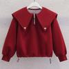 Pulover casual de primăvară pentru fete, stil colegial, cu mâneci lungi și guler păpușă