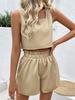 Costum versatil de culoare solidă: Îmbrățișați simplitatea și stilul cu acest costum de culoare solidă, care cuprinde un top cu vestă scurtă și pantaloni scurți, ideal pentru diverse ocazii.