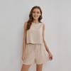 Vă prezentăm setul nostru elegant din două piese, perfect pentru orice ocazie. Pantalonii elastici, casual și largi oferă confort maxim, în timp ce topul fără spate cu doi nasturi adaugă o notă de eleganță. Acest costum de culoare solidă are o vestă scurtă și pantaloni scurți din bumbac și in respirabil, ideali pentru ținuta de vară.