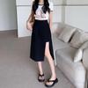 Women's A-Line Black Slit Skirt – High Waist, Slim Fit, Mid-Length, Autumn 2022 Collection