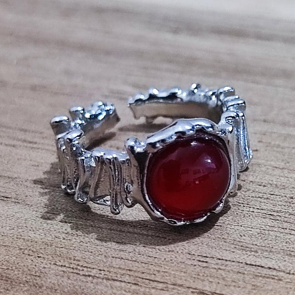Inel roșu neregulat design de nișă ins vânt rece inel de înalt simț temperament de modă inel deschis femei