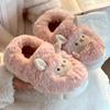 Women's Cozy Cartoon Lamb Slippers - Thick-Sole Indoor Cotton Fur Shoes for Autumn and Winter