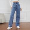 Blugi spălați cu talie înaltă pentru femei 2024 - Stil european și american, croială lungă și dreaptă (NK331)