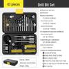 63-Piece Drill Bit Set: Twist, Woodworking, Flat, Center, and Cement Drills