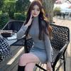 "Women's Autumn/Winter Slim Fit Half Turtleneck Long Sleeve Dress - Pure Desire Short Skirt"