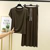 Set 2 piese tricouri cu mânecă scurtă cu gât rotund și fustă lungă mărime plus pentru casă Seturi de rochii largi la modă Set asortat pentru femei