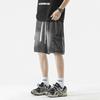 Pantaloni scurți din denim pentru bărbați, cu talie elastică, lejeri, drepți, cu cinci puncte, High Street, cu mai multe buzunare