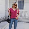 GMXIA Tricou de primăvară pentru femei, larg, casual, culoare solidă, cu gât în V, mânecă scurtă