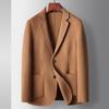 Costum de afaceri din lână pentru bărbați - Toamnă/Iarnă 2024: Culoare Solidă, Lucrat Manual, Față-Verso, Palton Gros Casual