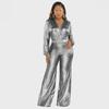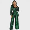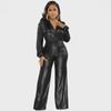 Salopetă Argintie cu Decolteu în V, Foarte Elastică - Stil Sexy European și American