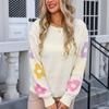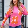 Pulover de toamnă și iarnă pentru femei, imprimat, cu gât rotund, la modă, cu floare mare