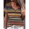 Tricou cu dungi pentru femei, de vară, de exterior, la modă, cu mânecă scurtă, cu gât în V, mărime mare, larg, îmbrăcăminte versatilă pentru femei