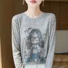 Toamnă Nou Tricou Larg de Damă cu Imprimeu Desen Animat, Gât Rotund, Mânecă Lungă, Cămașă de Bază pentru Femei