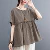 Summer Women Half Sleeve O-Neck Blouse Women Grid Printed Shirt Pleated Elegnat Work Tops Casual Loose Chemise