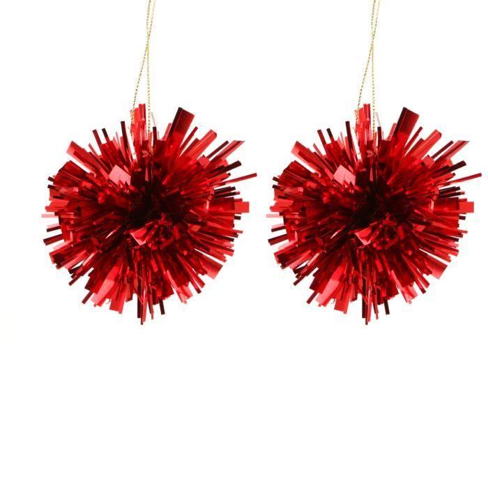 Suspension - 1001kdo - Set de 2 pompons - Rouge - 7 cm - Décoration de Noël