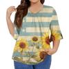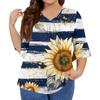 Women's Fashion Casual V-Neck Seven Sleeve Ruffle Sleeve Independence Day Printed T-Shirt Tops Plus Size Women's