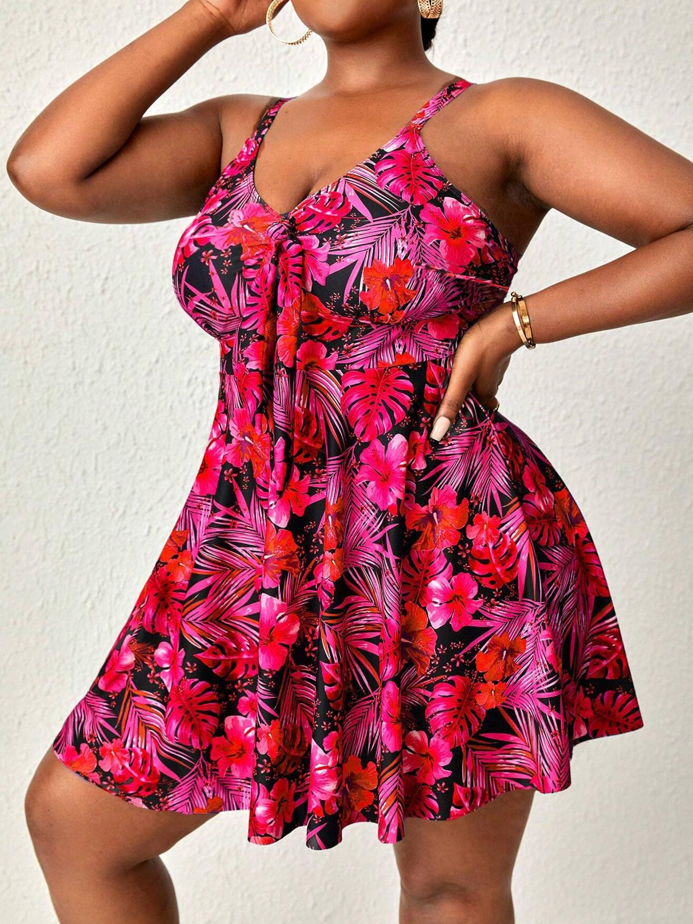 Femei Sexy Mărimi Mari Costum de Baie cu Imprimeu Floral Femeiesc Set Tankini din Două Piese de Vară la Modă Costum de Plajă Costum de Baie