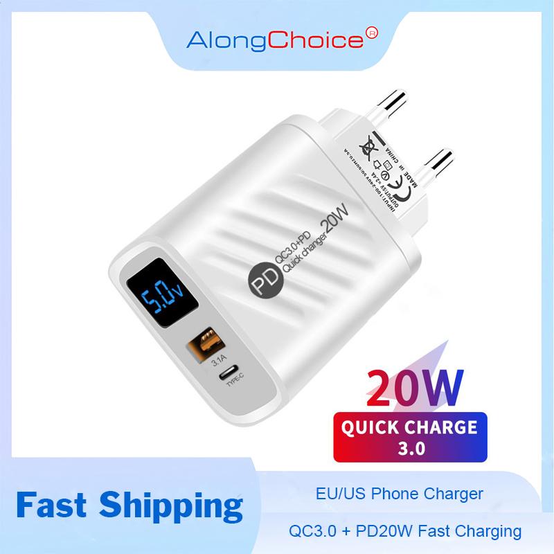 Încărcător USB PD 20W Încărcare rapidă tip C Adaptor de încărcare a telefonului cu afișaj digital pentru iPhone Samsung Xiaomi Huawei Încărcător de perete USB C