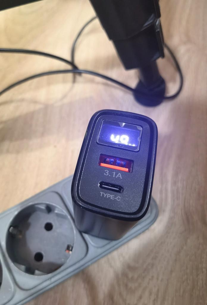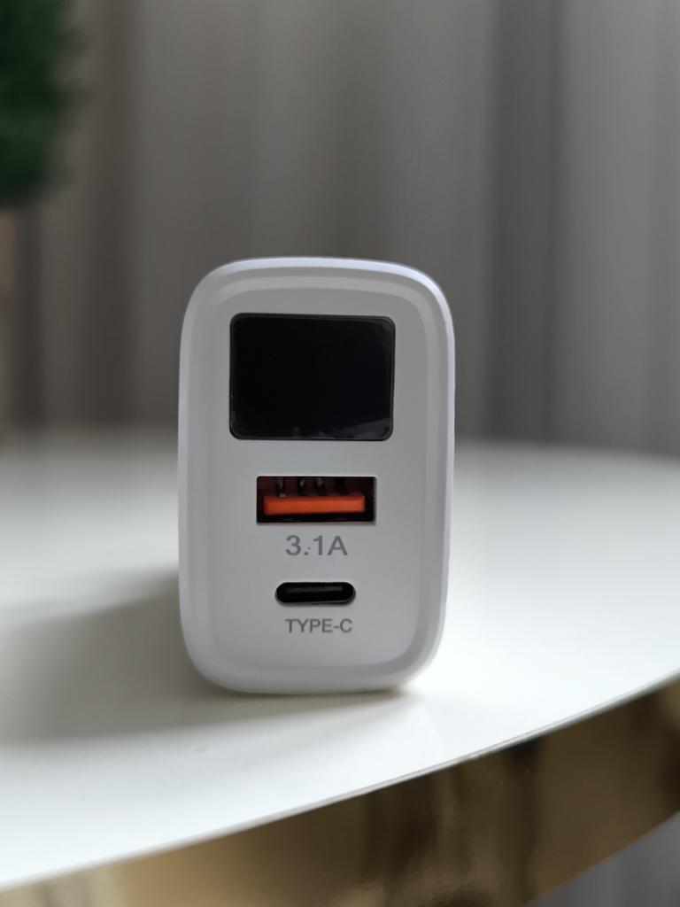 Încărcător 20 W cu două porturi Adaptorul poate fi folosit pentru a încărca simultan două gadgeturi.. Are conectori USB și Type-C. Are un afișaj care arată parametrii exacți de curent și tensiune în timp real. Își îndeplinește funcția de încărcare rapidă. Smartphone-ul se încarcă de la 2% până la 50% în aproximativ 30 de minute. Încărcător bun, economic. Recomand cu siguranță cumpărarea!