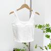 Vesta de vară din bumbac pentru femei cu un fund alb cu pernă pentru piept, bretea unică pe corp cu tricou fără mâneci, croială slim-fit, guler pătrat