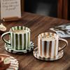 Striped Antique Coffee Mug Minimalist Striped Hand Drawn Cup and Plate Set New Ceramic Milk Afternoon Tea Coffee Cup Household