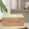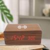 Ceas deșteptător digital din lemn alimentat prin USB, cu încărcare wireless, TEMP, dată, mod nocturn, ceas de birou, 12/24h, control vocal, ceas LED