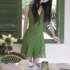 Rochie de vară pentru femei, verde franceză, cu decolteu în V, talie subțire, rochie în formă de A