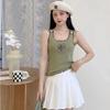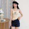 Design Nou de Vară Temperament Simplu Dulce Culoare Contrastantă Brodat Tricotat Vestă Top cu Bretele