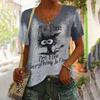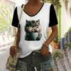 Tricou de modă de vară pentru femei, cu desene animate, pisică neagră, cu decolteu în V, tricouri, pentru femei, ocazional, îmbrăcăminte cu mânecă scurtă, îmbrăcăminte de stradă elegantă pentru femei
