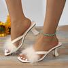 Fashion Flip-Toe Solid Color Low Heel Plush Square Toe Women's Slippers Shallow Mouth Solid Color Summer Women's Slippers