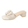 Pantofi Papuci de damă Toc pătrat Papuci Femei Med Lux Diapozitive Vară Bloc Designer Roma Sandale PU Tocuri copită