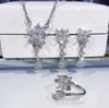 Bridal Jewelry Necklace Three-Piece Set, Super Flash Flower Water Drop Zircon Jewelry, Women'S Necklace Set