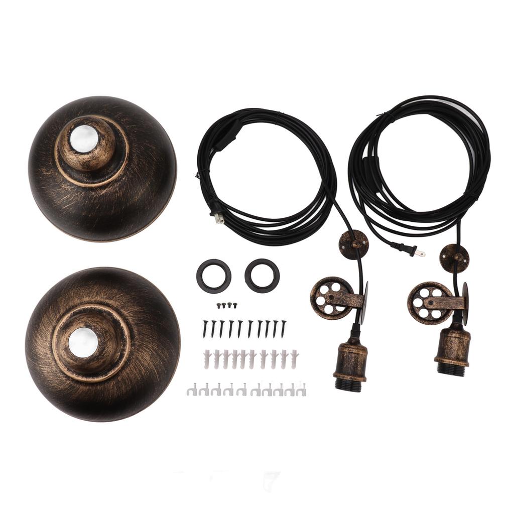 2 Set Vintage Industrial Plug in Pulley Pendant Light with 19.6ft Cord Bronze Dome Ceiling Light