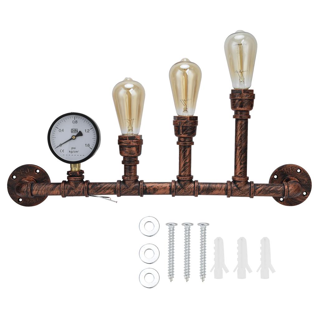 Iron Wall Lamp 3 Head Water Pipe Light Steampunk Retro Wall Lamp with E27 Socket for Restaurant