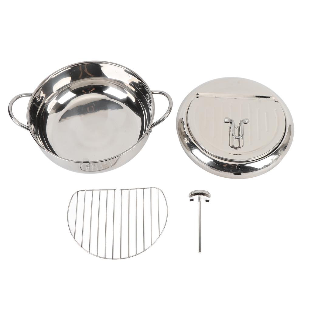 Stainless Steel Fryer Pot with Thermometer Lid Oil Drip Drainer Rack Multifunctional Deep Frying