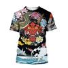 Japanese Harajuku Printing T Shirt For Men Fashion Samurai Mask Graphic T shirts Summer Leisure O-neck Pullover Oversized Tops