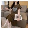Rochie T-shirt de Modă pentru Femei de Vară Grasă Mm Mânecă Scurtă Peste Genunchi Rochie Lungă Casual cu Crăpătură
