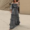 ZANZEA Rochie lungă de vacanță cu mâneci 3/4, cu umăr dezactivat