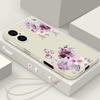 Carcasă rezistentă la șocuri cu model floral violet pentru iPhone 16 Pro Max 15 Pro 14 13 12 Mini 11 XS XR 8 7 Lanyard TPU Lens Protection Matte Soft Phone Cover