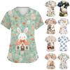 Women's Short Sleeve V-Neck Drawstring Easter Bunny Egg Print Pocket Top