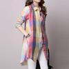 Femei Plus Size vară subțire în carouri cămașă lungă vrac elegant stil coreean bluze topuri