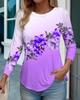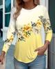 Tricou Femei Floral Imprimare 3D Mânecă Lungă Tricouri de Bază Zilnice Gât Rotund Topuri Casual