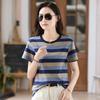 Tricou Casual de Vară cu Dungi Albastre pentru Femei, Mânecă Scurtă, Gât Rotund, Simplitate, Modă, Mărimi Mari, Animat Digital